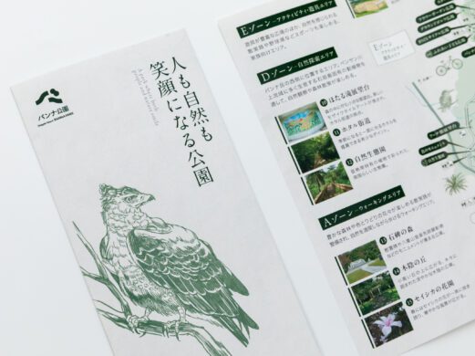 Brochure バンナ公園のパンフレットです。中面には園内マップを掲載。イラストや写真を採用し、パンフレットを片手に園内を楽しく回れるように制作しました。