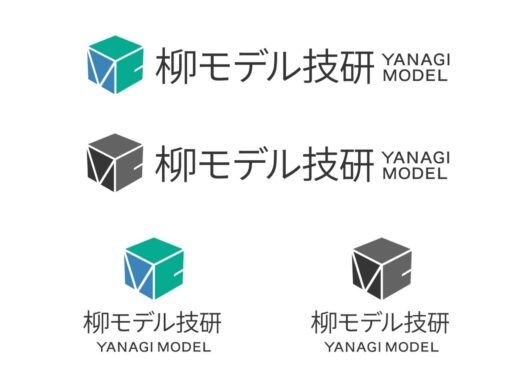 柳モデル技研様のロゴデザインです。 掲載する媒体や用途に合わせて使いやすいよう、複数パターンをご用意しました。